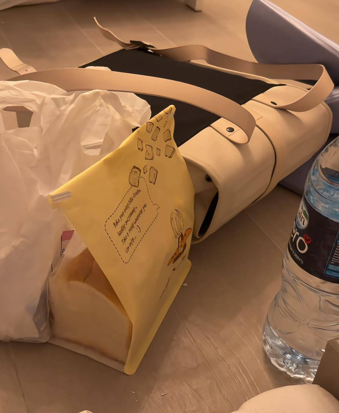 即使在家中,刘女士也要给自己“全副武装”上,她脖子上套着颈枕,还翻出滑雪用的头盔放在身边,如果感到响声离自己很近或者稍微靠近窗户时,刘女士就会戴上头盔。刘女士还翻出了羽绒服,还准备了小包装上食物、证件、药物、现金等等,这样如果出现突发情况,她可以随时立刻撤离。